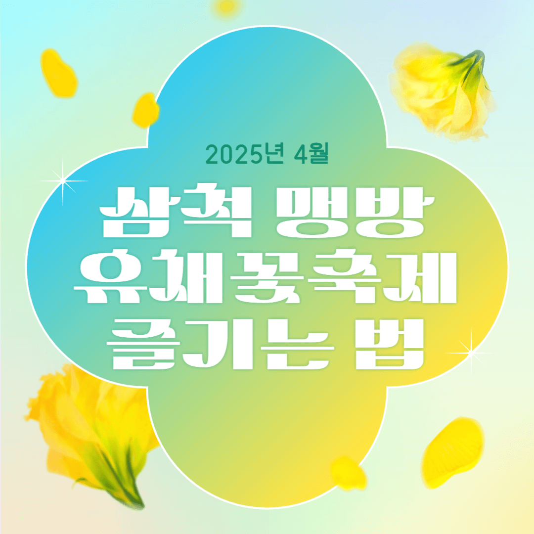삼척 맹방유채꽃축제는 꽃의 향연, 동해 바다의 청량함, 그리고 지역의 정겨움이 어우러진 봄철 최고의 축제입니다. 2025년 4월, 눈과 마음이 모두 힐링되는 이곳에서 가족, 연인, 친구들과 함께 봄날의 추억을 만들어보세요. 지금 바로 일정 확인하고, 삼척으로 떠나볼 준비되셨나요?